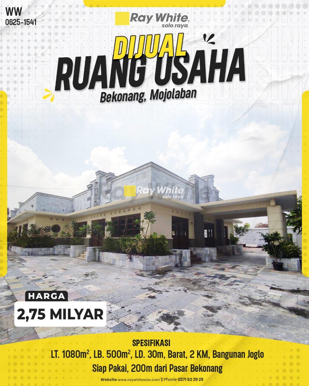 Keunggulan Lokasi di Bekonang, Mojolaban, Sukoharjo: Terletak di Bekonang, Mojolaban, sebuah area yang berkembang dan memiliki akses yang sangat baik, properti ini hanya berjarak 200m dari Pasar Bekonang. Bangunan utama bergaya joglo sangat unik dan cocok untuk usaha yang membutuhkan ciri khas budaya, seperti restoran tradisional, galeri seni, wedding venue, atau penginapan butik. Luas tanah 1080m² dan bangunan 500m² dengan lebar depan 30m menawarkan potensi pengembangan yang beragam untuk bisnis Anda.