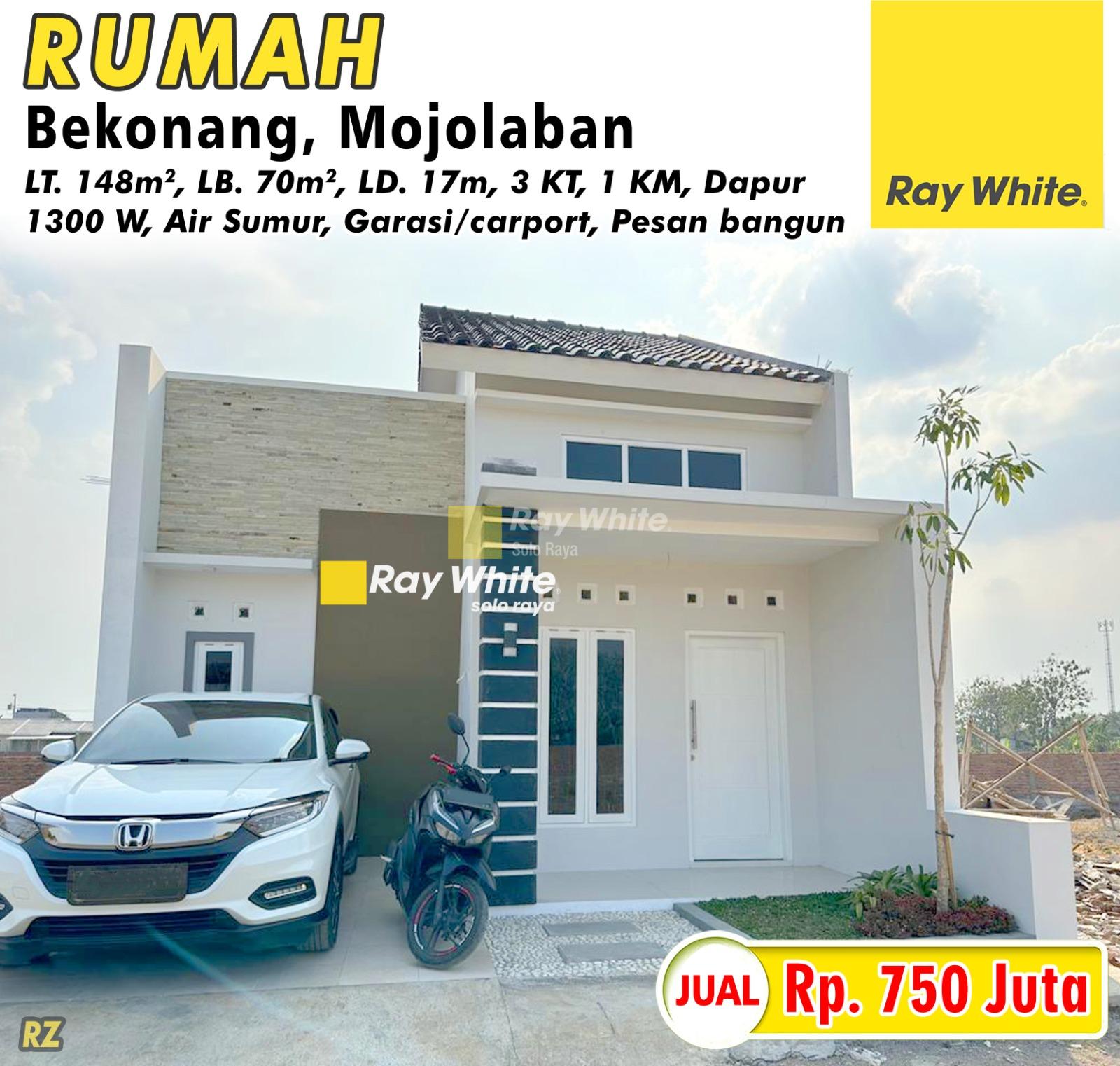 LT. 148m2, LB. 70m2, LD. 17m, 3KT, 1KM, Dapur, 1300W, Air Sumur, Garasi/Carport, Pesan bangun