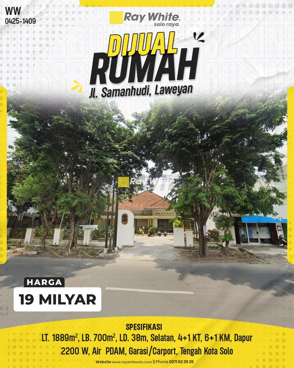 Rumah luas dan strategis di tengah kota Solo, cocok untuk hunian keluarga besar, guest house, maupun investasi properti jangka panjang.