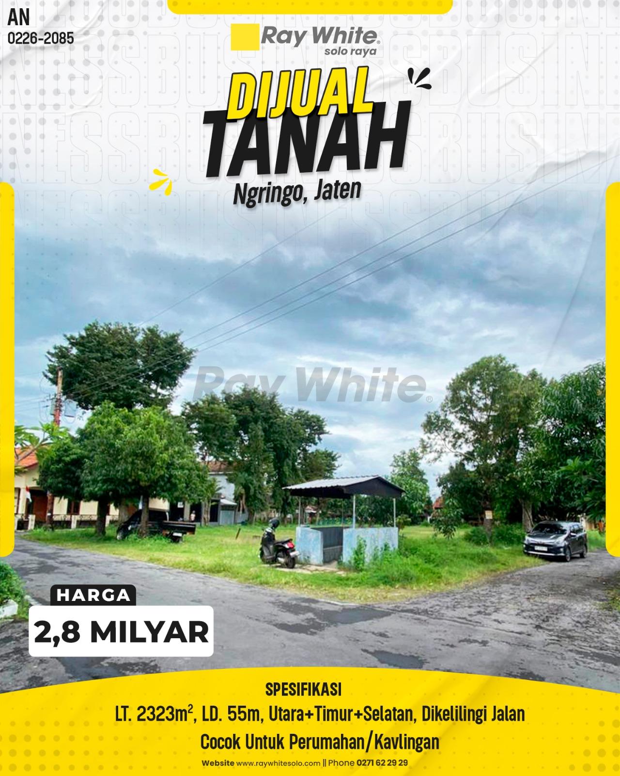 Peluang emas bagi para developer properti atau investor tanah! Dijual sebuah lahan hamparan yang sangat luas berlokasi di kawasan Ngringo, Jaten. Berada di perbatasan langsung dengan area Palur, kawasan ini merupakan sabuk pemukiman yang sangat padat dan hidup, menghubungkan Kota Surakarta dengan Kabupaten Karanganyar. Permintaan (demand) akan hunian atau tanah kavling di area Ngringo selalu tinggi setiap tahunnya.