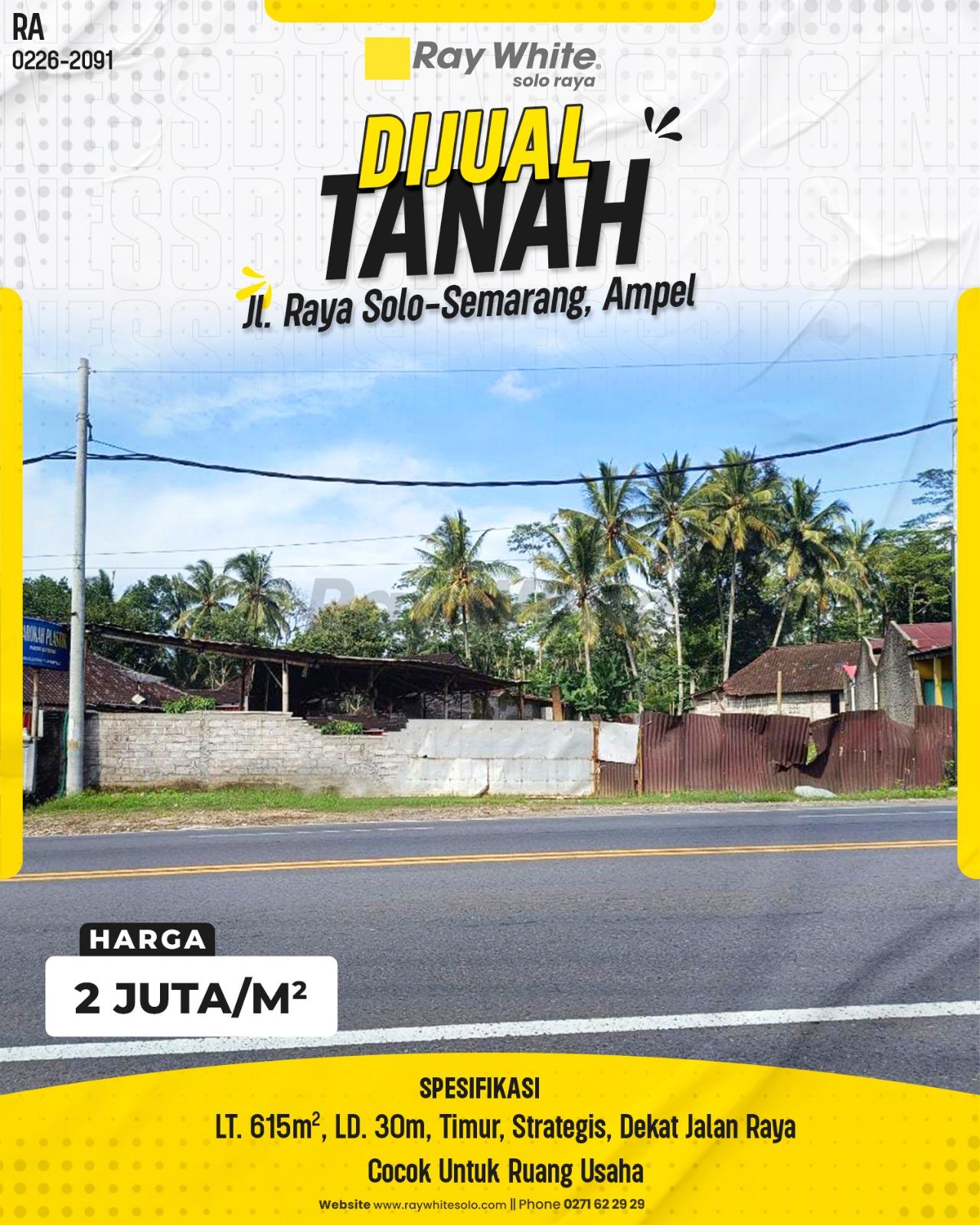 Amankan posisi strategis untuk bisnis Anda di salah satu jalur distribusi dan transportasi paling sibuk di Jawa Tengah! Dijual sebuah lahan potensial yang berlokasi tepat di pinggir Jalan Raya Solo-Semarang, kawasan Sidomulyo, Ampel. Jalur ini merupakan urat nadi lalu lintas antarkota dan antarprovinsi yang tidak pernah sepi selama 24 jam, menjamin tingkat visibilitas (exposure) yang maksimal bagi bidang usaha apa pun yang Anda bangun di atasnya.