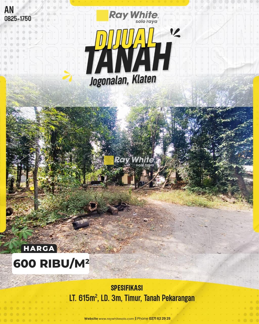 Sebuah peluang investasi properti yang sangat menarik di kawasan yang tenang dan asri di Jogonalan, Klaten. Dijual sebidang tanah pekarangan luas seluas 615 m², yang sangat cocok untuk dibangun hunian pribadi dengan halaman yang lapang. Lingkungan pedesaan yang nyaman menjadikan lahan ini pilihan ideal bagi Anda yang mendambakan ketenangan.