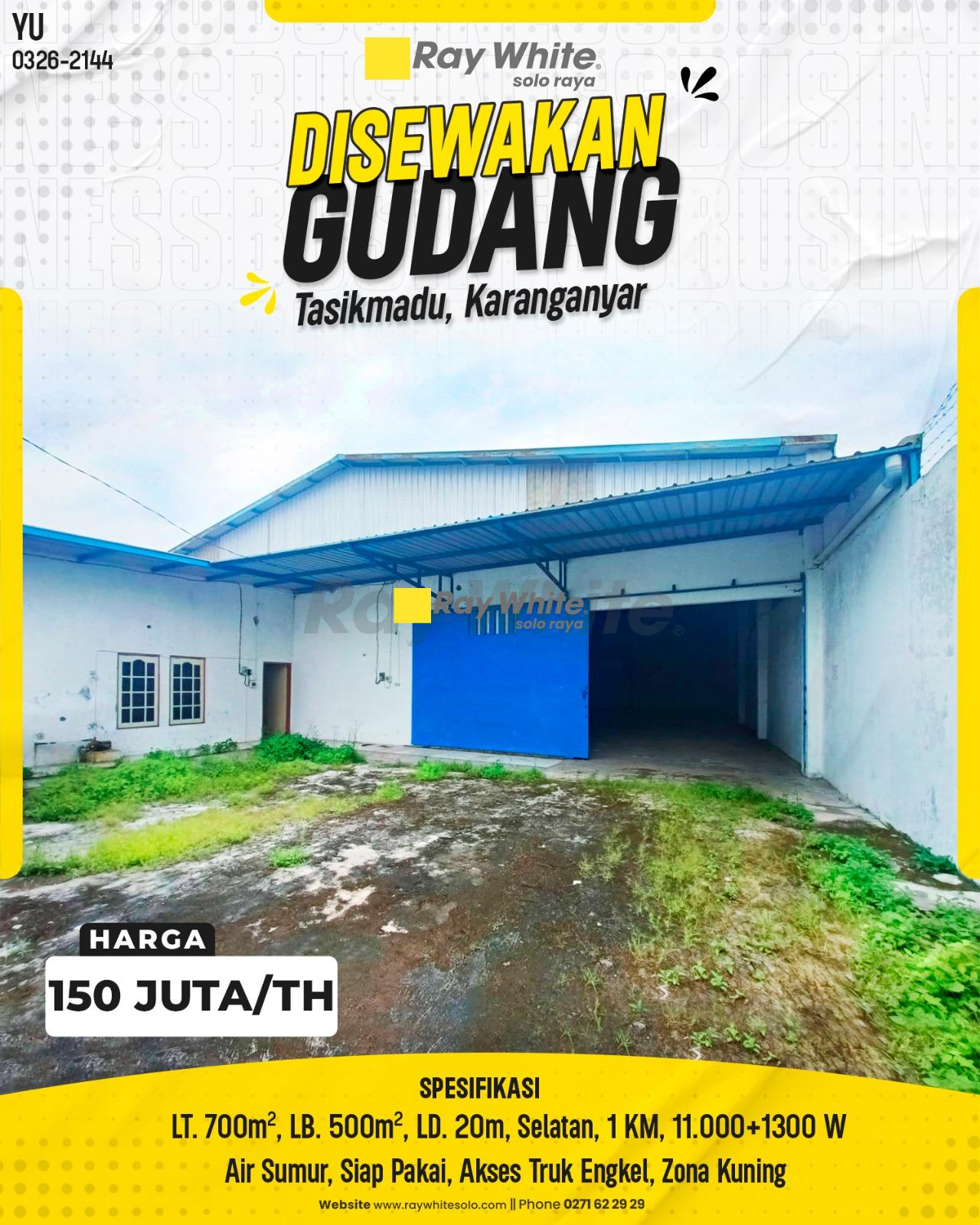 Optimalkan kelancaran distribusi dan operasional bisnis Anda dengan menyewa gudang strategis di kawasan industri Tasikmadu. Unit ini menawarkan luas tanah yang memadai (700 m²) dengan lebar depan mencapai 20 meter, memberikan visibilitas serta kemudahan akses keluar-masuk kendaraan. Kondisi bangunan sangat terawat dan siap pakai, didukung dengan kapasitas daya listrik yang besar untuk menunjang aktivitas pergudangan maupun industri ringan di wilayah Karanganyar.