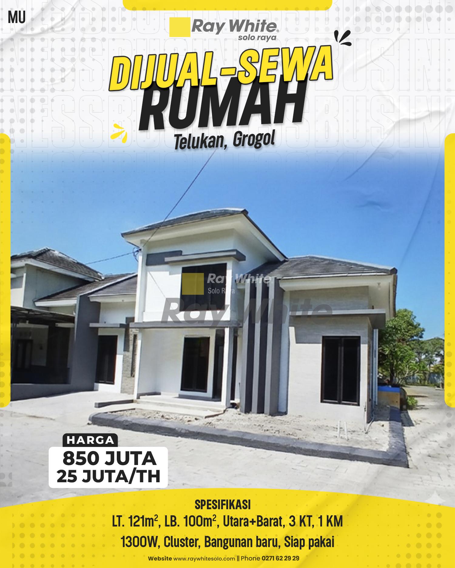 Luas Tanah 121m2, Luas Bangunan 100m2, Hadap Utara-Barat, 3 Kamar Tidur, 2 Kamar Mandi, Listrik 1300w, Cluster, Bangunan Baru
