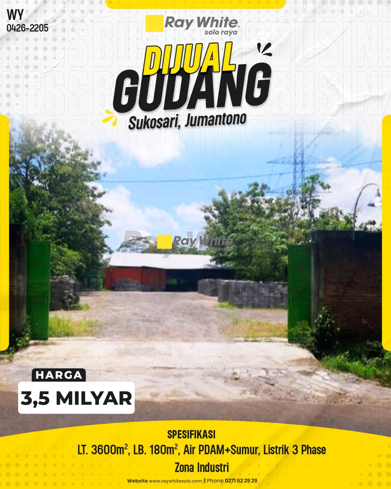 Ingin mengakuisisi gudang strategis di Jumantono ini? Kabar gembira! Ray White Solo Raya kini bekerjasama dengan Bank Danamon. Manfaatkan fasilitas Kredit Investasi atau Modal Kerja dengan proses yang cepat, mudah, dan bunga kompetitif untuk mempermudah kepemilikan aset perusahaan Anda. Hubungi kami sekarang untuk informasi kemitraan finansial!