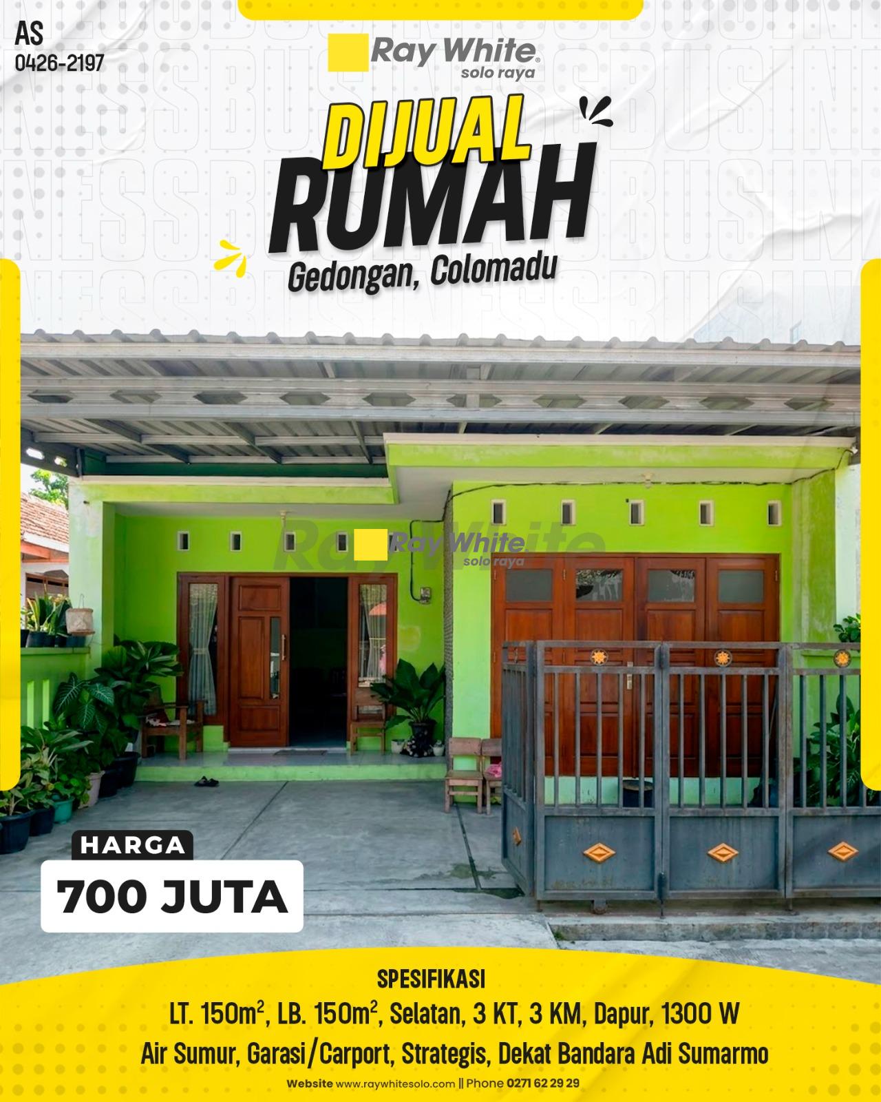 Ingin memiliki hunian potensial di Gedongan Colomadu ini? Kabar gembira! Ray White Solo Raya kini bekerjasama dengan Bank Danamon. Manfaatkan fasilitas KPR dengan proses yang cepat, mudah, dan bunga kompetitif untuk mempermudah kepemilikan aset properti keluarga Anda. Hubungi kami sekarang untuk simulasi cicilan!