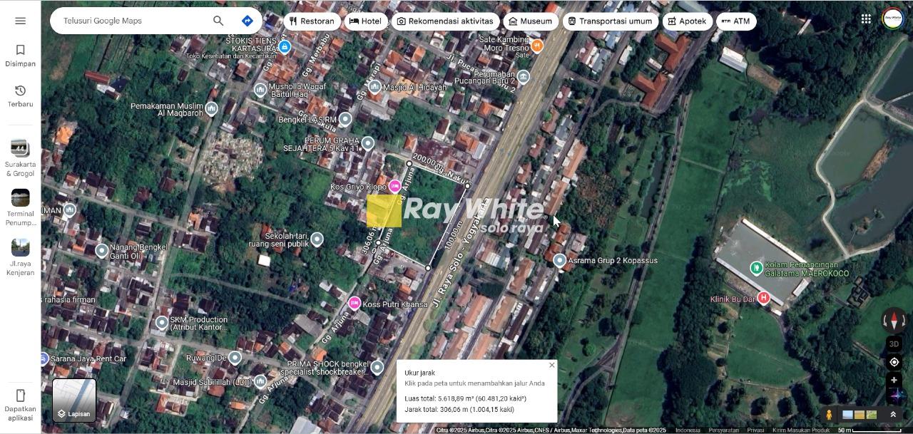 Keunggulan Lokasi di Pucangan, Kartasura: Tanah sangat strategis ini berlokasi di nol jalan raya Solo-Yogyakarta, tepat di depan markas Kopasus, menjadikannya lokasi premium dengan visibilitas tinggi dan akses yang sangat mudah. Dengan lebar depan 94 meter dan luas lahan hampir 6400m², properti ini sangat ideal untuk pengembangan komersial berskala besar seperti pusat perbelanjaan, showroom, gudang, kantor, atau fasilitas logistik. Berada di jalur utama yang menghubungkan dua kota besar, properti ini menawarkan potensi bisnis yang luar biasa.