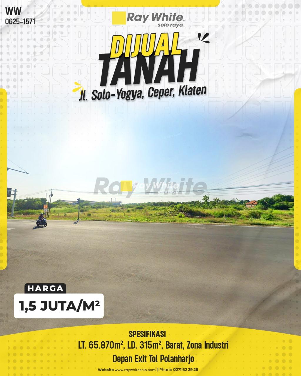 Keunggulan Lokasi di Kuncen, Ceper, Klaten: Tanah ini berlokasi sangat strategis di Jalan Solo-Yogya, Kuncen, Ceper, Klaten. Dengan luas mencapai 65.870m² dan lebar depan 315 meter, properti ini berada di zona industri dan persis di depan exit tol Polanharjo. Hal ini menjadikannya sangat ideal untuk pengembangan industri, logistik, atau investasi skala besar yang membutuhkan aksesibilitas tinggi dan infrastruktur yang mendukung.